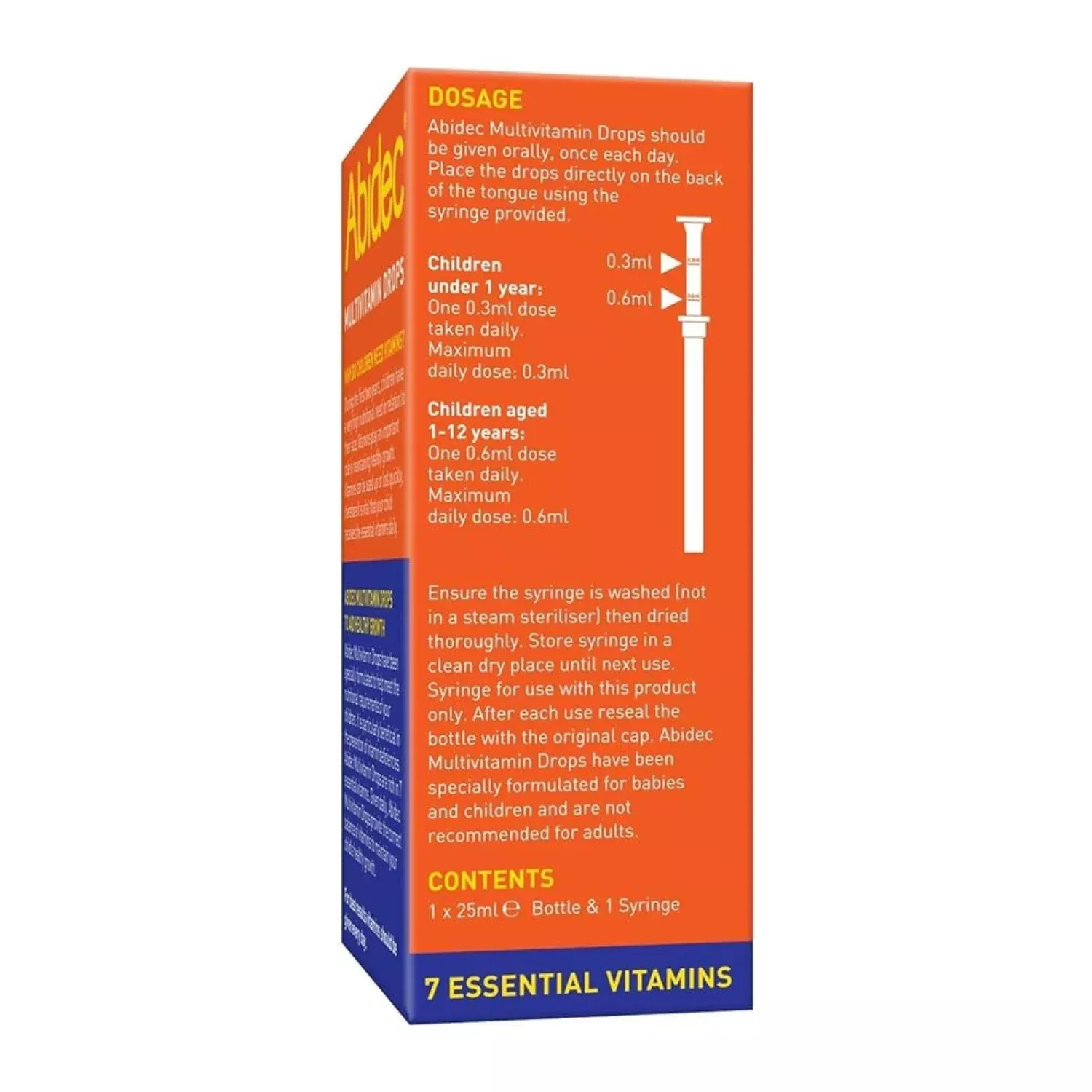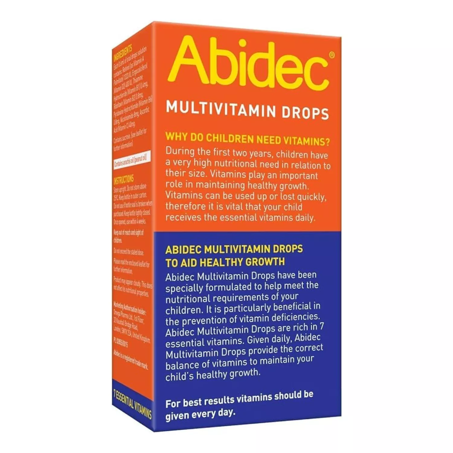 Abidec Multivitamin Drops to aid healthy growth. Abidec Multiviamin drops have been specially formulated to help meet the nutritional requirements of your children. It is particulally benifical in the prevention of vitamin deficiencies. Abidec multivitamin drops are rich in 7 essential vitamins. Given daily Abidec provides the corret balance of vitamins to maintain your child’s healthy growth. During the first two years, children have a very high nutritional need in relation to their size. Vitamins play an important role in maintaining healthy growth. Vitamins can be used up or lost quickly, therefore it is vital that your child receives the essential vitamins daily.