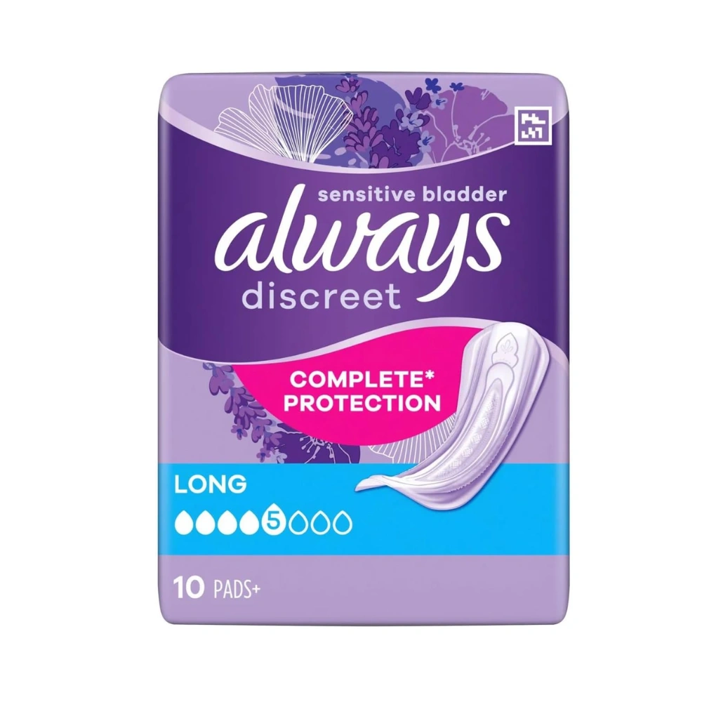Always Discreet Pads for incontinence are for occasional leakage when sneezing or coughing causing wetness.