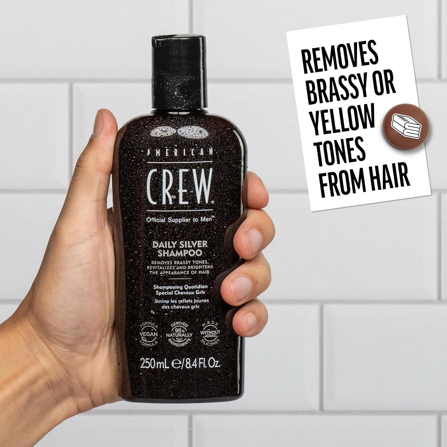 American Crew Daily Silver Shampoo is specifically formulated for men that have grey hair. This product helps to prevent yellow and brass tones, so that your grey hair looks natural. This shampoo will also clean your hair and provides a light conditioning without weighing your hair down.