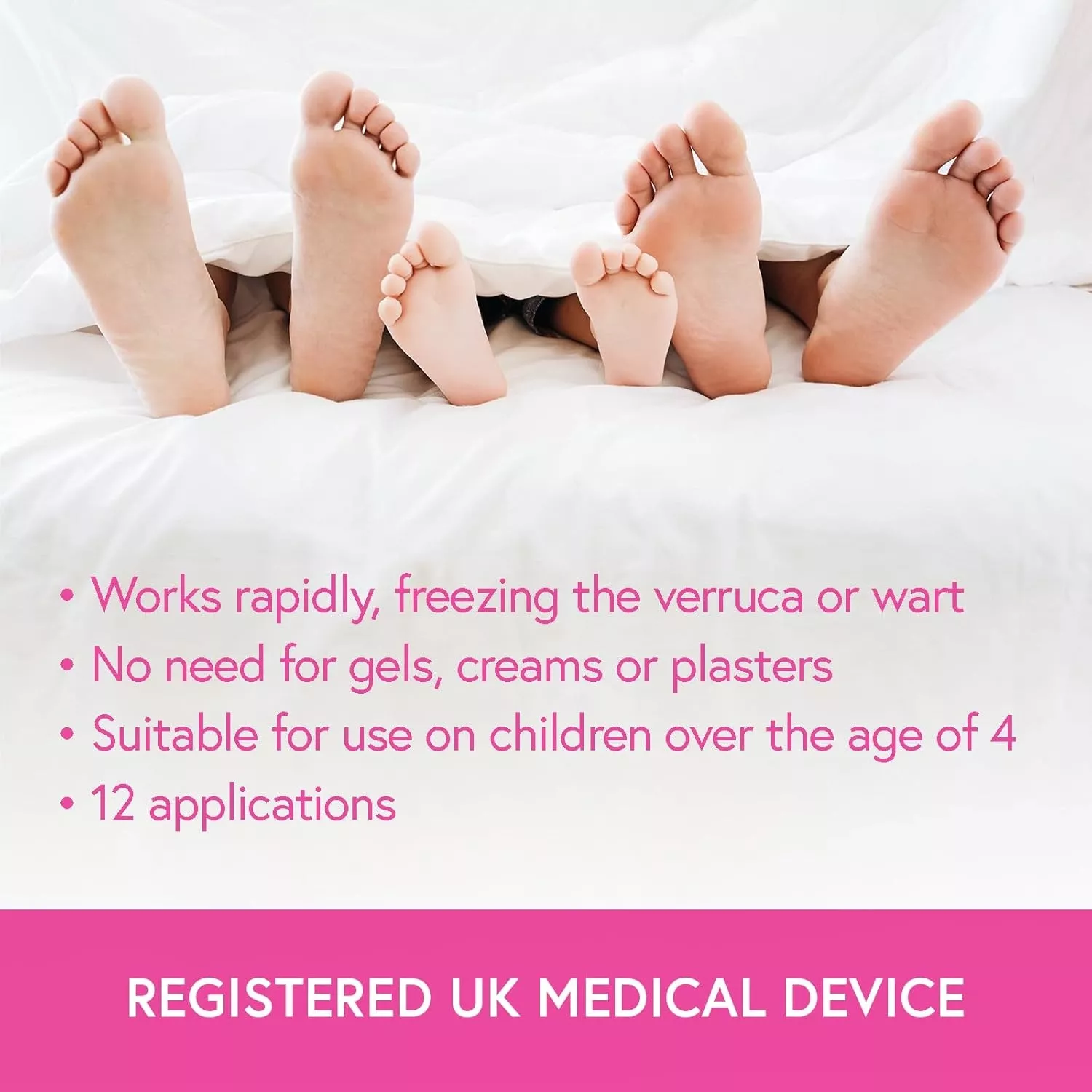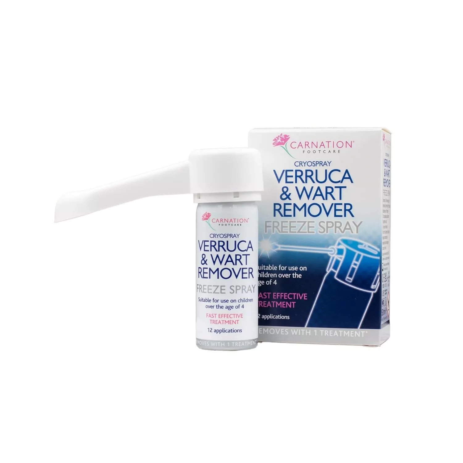 Carnation Footcare Verruca & Wart Remover Freeze Spray is an easy to use treatment for the removal of verrucas and warts in as little as one treatment. Works by rapidly freezing the verruca or wart without the need for gels, creams or plasters. Precise, targeted action with precision applicators. Fast effective treatment. Suitable for use on children over the age of 4. Not suitable for diabetics or during pregnancy.
