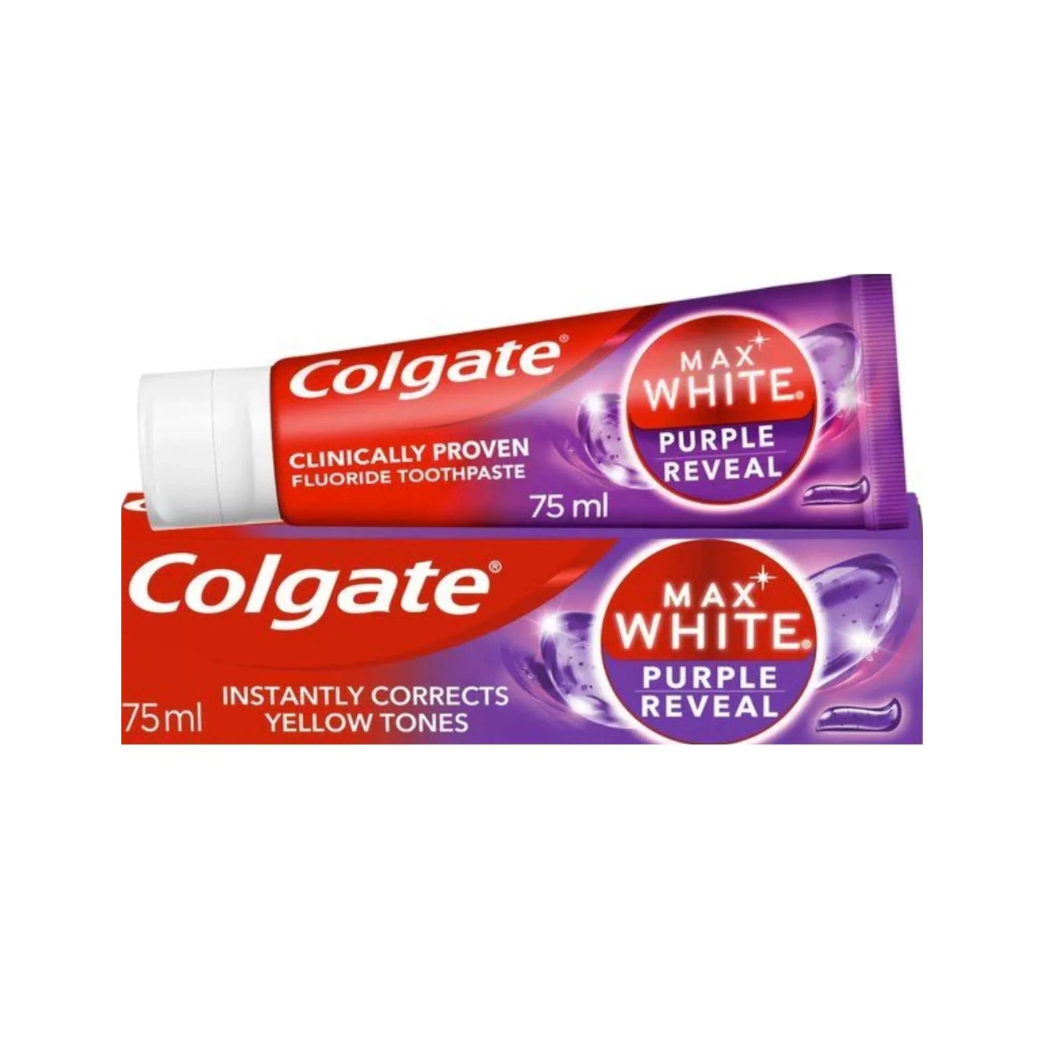 Awaken your senses with our Colgate Max White Purple Reveal Teeth Whitening toothpaste. Inspired by the colour science of purple shampoos, this Colgate’s first purple toothpaste that uses optic colour-correcting technology to instantly* correct yellow tones. With four 75ml tubes in each pack, you’ll always have plenty to keep your smile bright and beautiful!