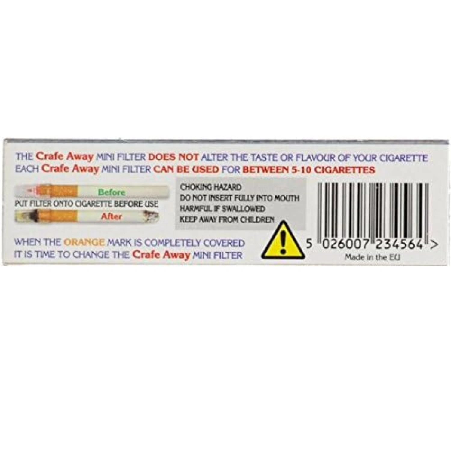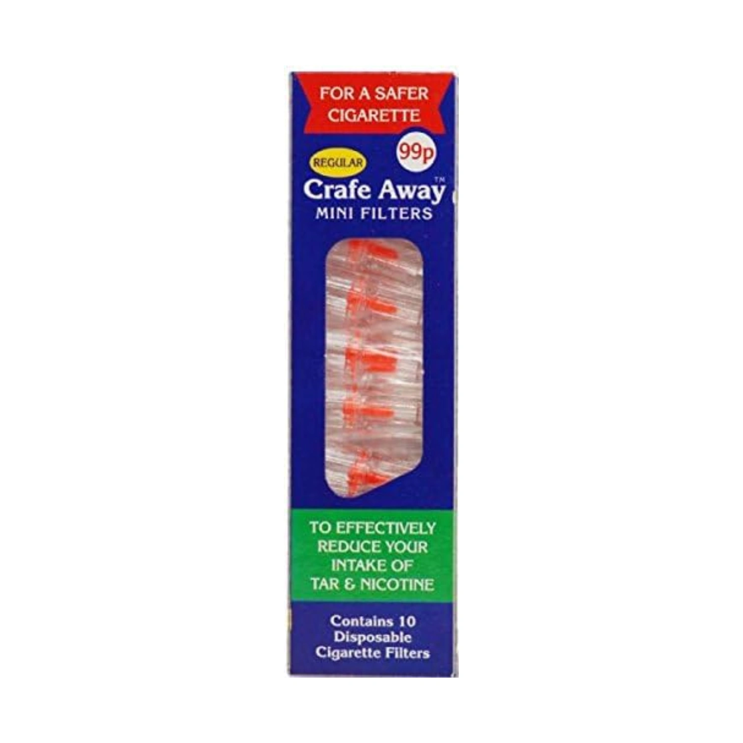 The Crafe Away brand & product range was launched in the 1990’s and was initially a pharmacy product. However such was the popularity of these products – no doubt assisted by the introduction of smoking bans throughout the UK in 2007 – they now have a strong presence in the mainstream. Crafe Away filters are aimed at reducing the amount of nicotine & tar taken in by the smoker. With the current hard hitting advertising campaign showing the potential damage caused by the toxins in cigarettes, smokers have never been so aware and are always looking for a way to reduce some of the risks. Crafe Away filters are ideal for this as they actively reduce the amount of toxins taken in by the smoker. Crafe Away FiltersRoll Up & Standard variants available Reduces Tar & Nicotine Enables “A safer†cigarette.