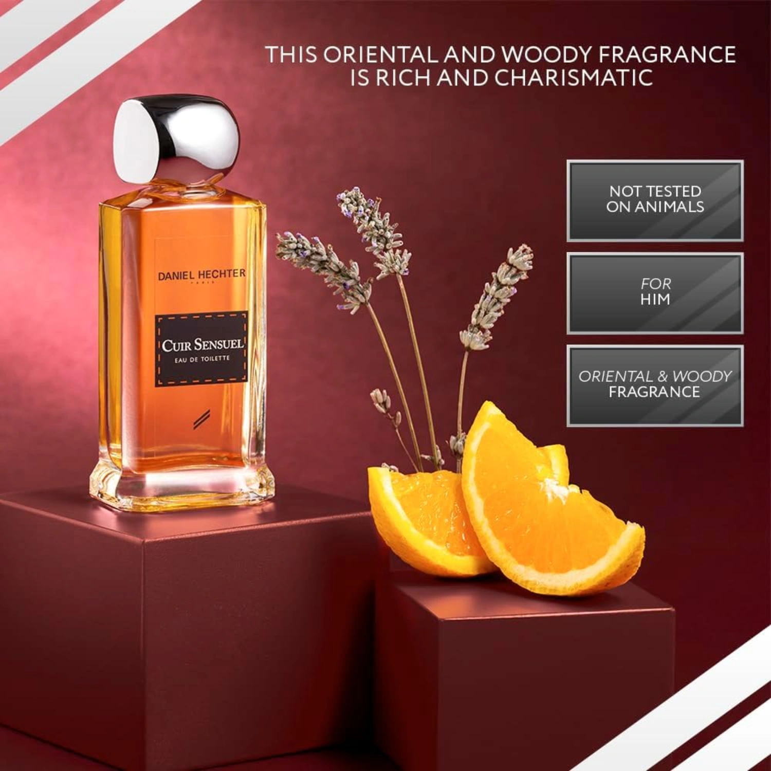 Spray Daniel Hechter Cuir Sensuel EDT onto pulse points — wrists, neck, and chest — from about 15–20 cm away. Apply to clean, dry skin for best results. Avoid rubbing the fragrance after spraying to preserve its scent.