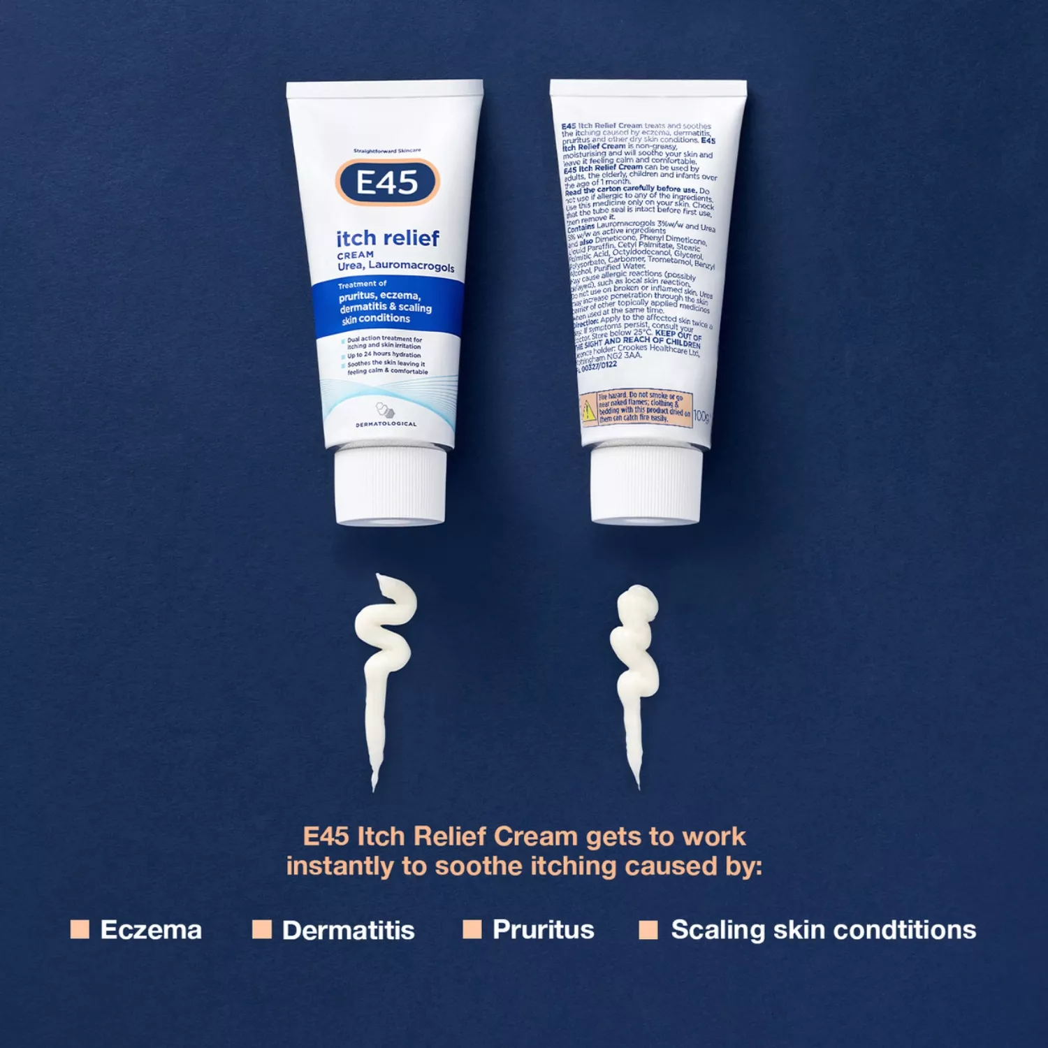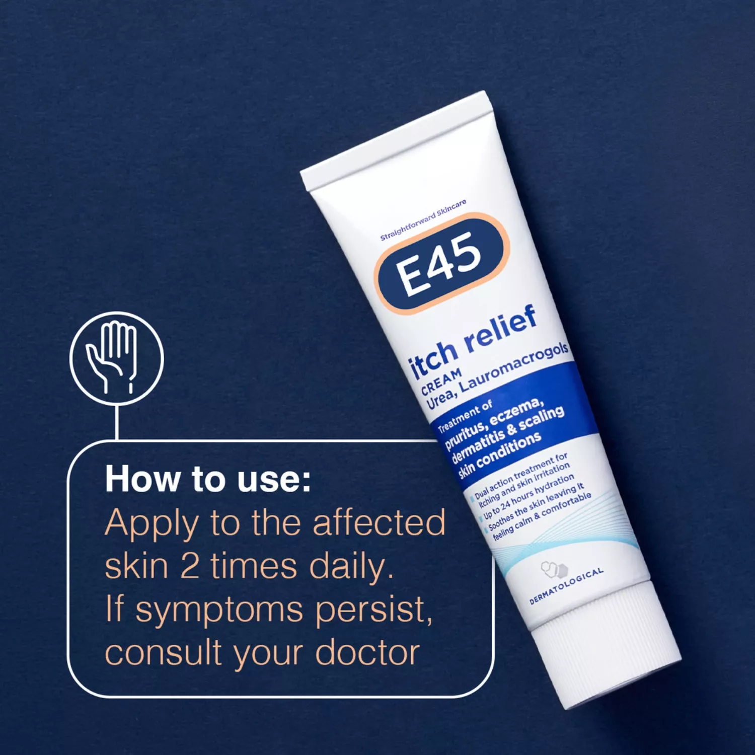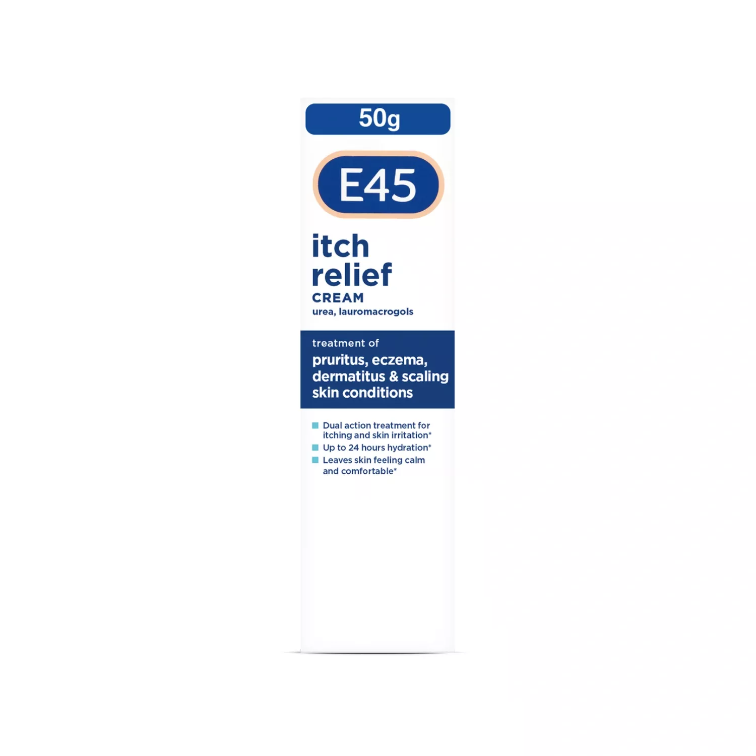 E45 Itch Relief Cream 50g has been crafted as a dual-purpose remedy, aiming to offer swift alleviation from itching and discomfort stemming from dry skin ailments, eczema, dermatitis, pruritus, and flaking skin issues. This moisturising cream, which isn’t oily, is apt for everyone, even infants older than a month. It’s enriched with urea, a naturally occurring skin moisturiser, and lauromacrogols, an anaesthetic for the skin, ensuring that your skin remains serene and at ease.