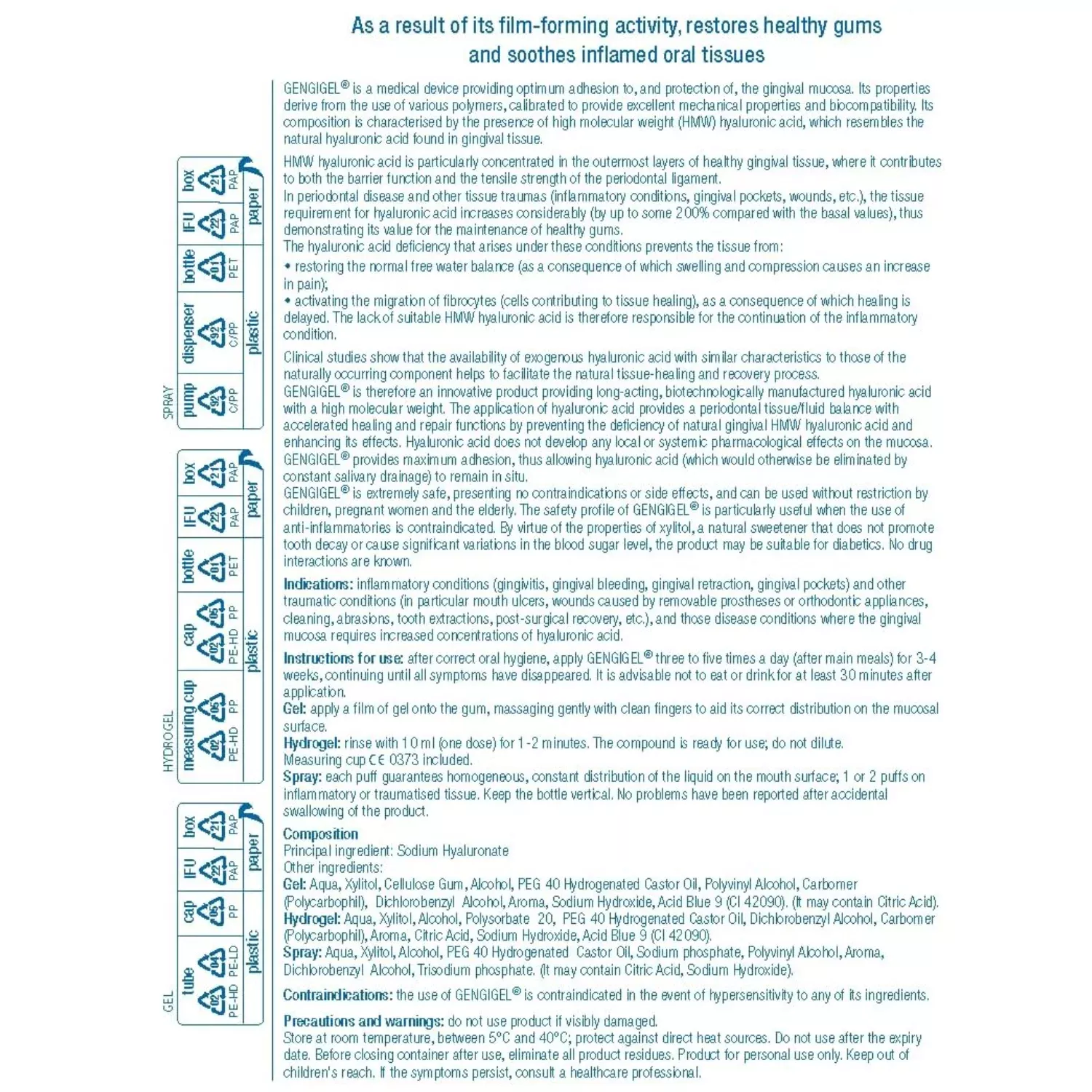 Hyaluronic acid 0.2%, xylitol & excipients.