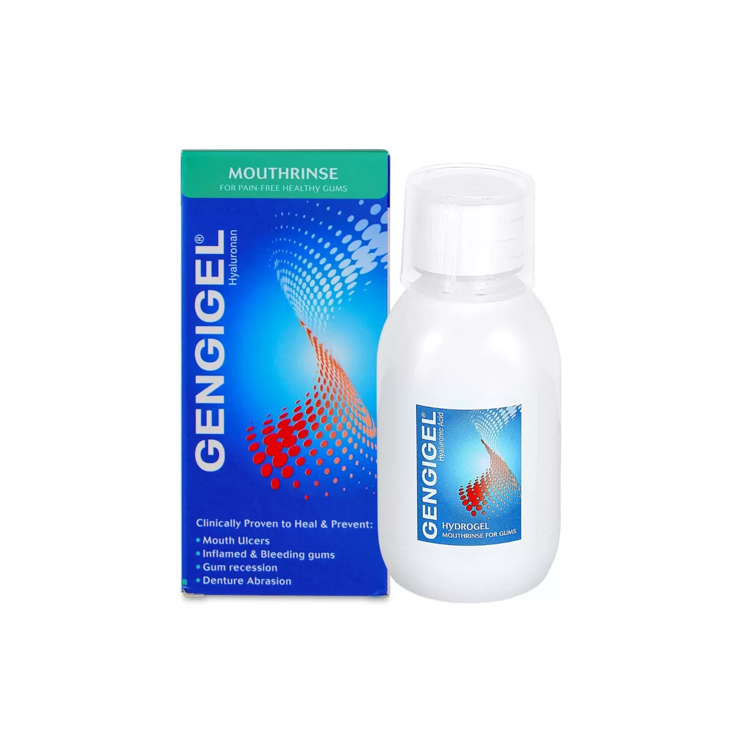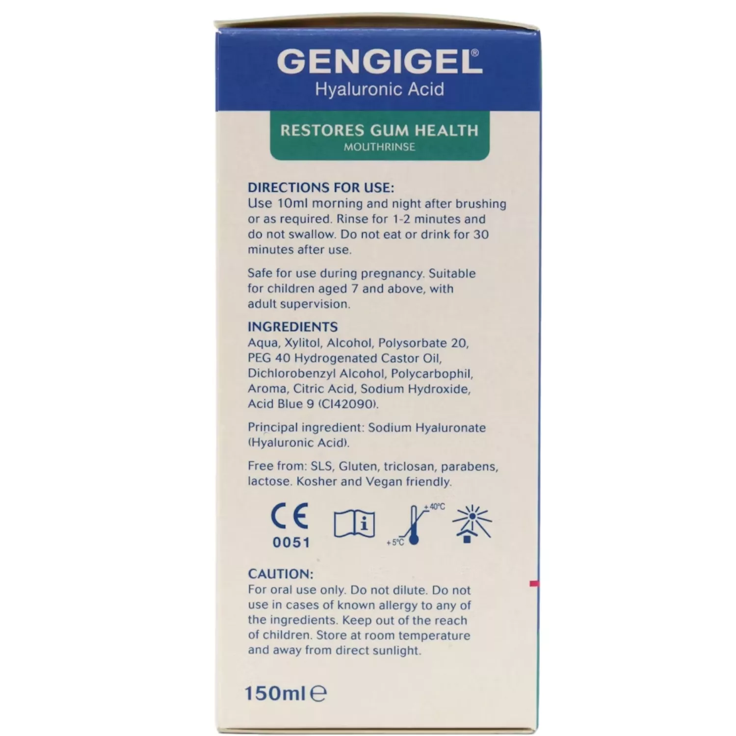 Gengigel Mouthrinse is a unique solution designed for the care of mouth and gums, especially when they are inflamed or receding. Made with hyaluronic acid, commonly found in the body’s connective tissues, it encourages the development of new, healthy tissue upon gum contact. This mouth rinse is appropriate for everyone, and there haven’t been any reported negative reactions or contraindications.