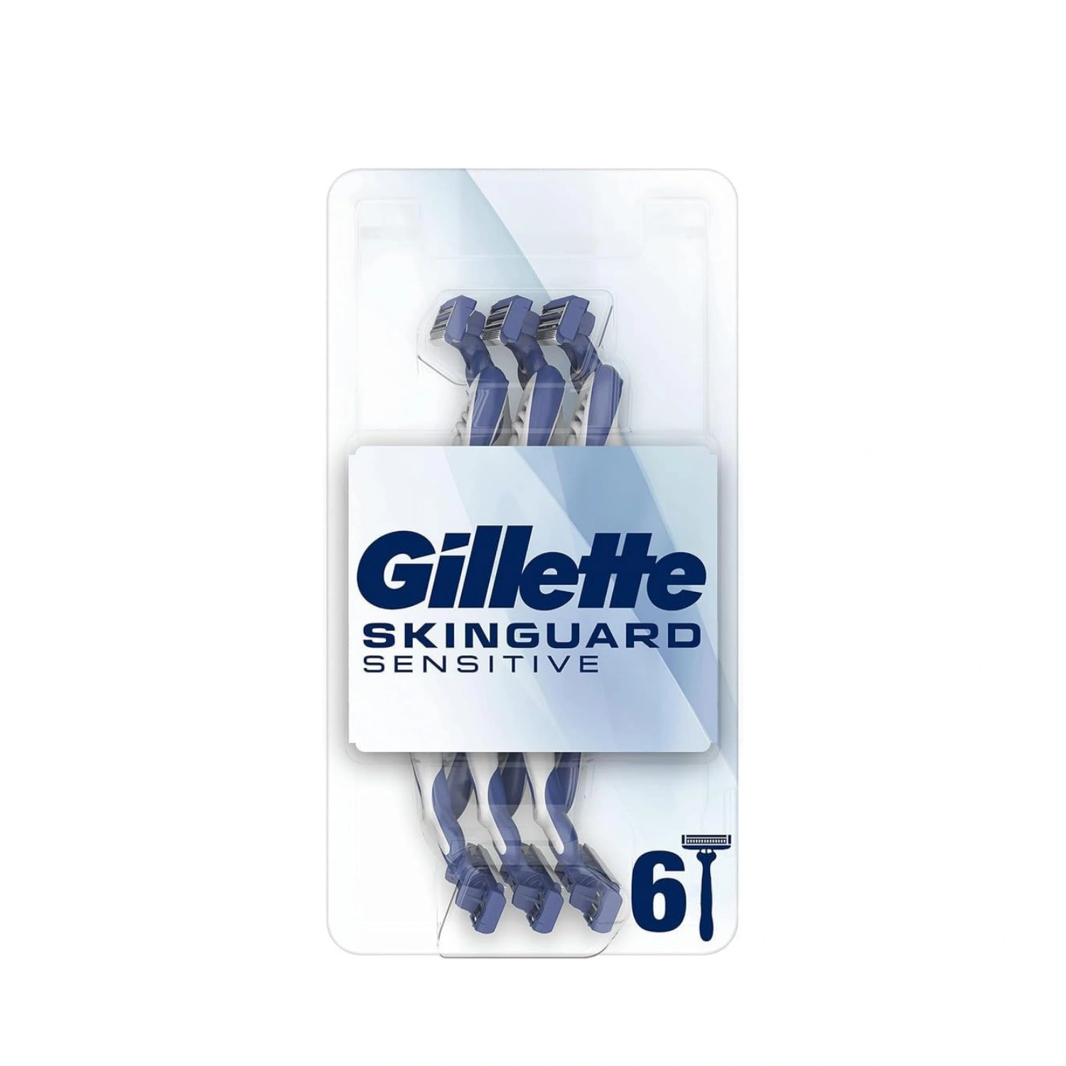 The Gillette Skinguard Sensitive Skin Disposable Razor has been clinically tested for sensitive skin. It features the SkinGuard comfort guard between the blades to help reduce shaving irritation, so you can shave whenever you want without worrying about the consequences. And it offers all the comfort you expect from Gillette disposable razors. The pivoting head and blades easily adapt to the contours of your face and skin surface, while the lubricants in the tape activate when in contact with water so the razor glides smoothly across your skin. Each SkinGuard Sensitive Skin disposable razor gives you up to 10 comfortable shaves, for smooth everyday skin. Handle made with 50% recycled plastic.
