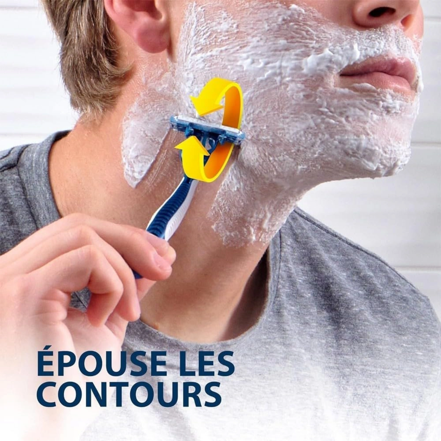 - ‘REDUCE RASAGE IRRITATIONS: The SkinGuard comfort protection between the blades absorbs the pressure of your hand, so that the blades press less on your skin’ and other similar instructions on how to use the razor correctly.