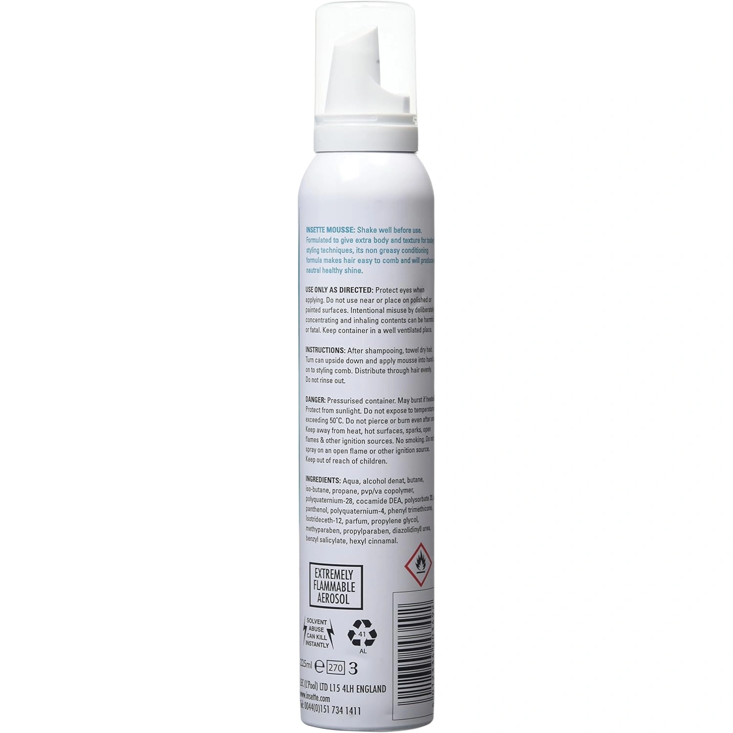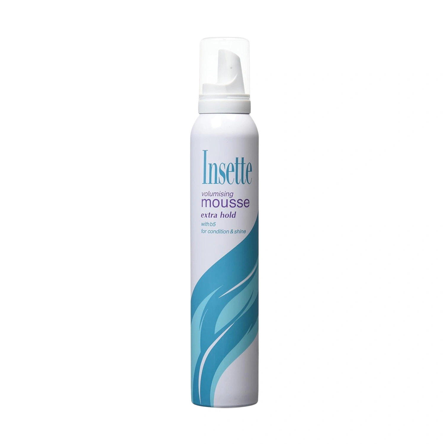 Insette Extra Hold Volumising Mousse 225 ml (Pack of 12) With B5 for condition and shine Helps keep your hair from falling flat while providing an ideal level of conditioning Formulated to be light enough for daily use Made with a volume control complex and silk protein Made with a volume control complex and silk protein Insette Extra Hold Volumising Mousse 225 ml (Pack of 12) With B5 for condition and shine Helps keep your hair from falling flat while providing an ideal level of conditioning Formulated to be light enough for daily use Made with a volume control complex and silk protein Made with a volume control complex and silk protein