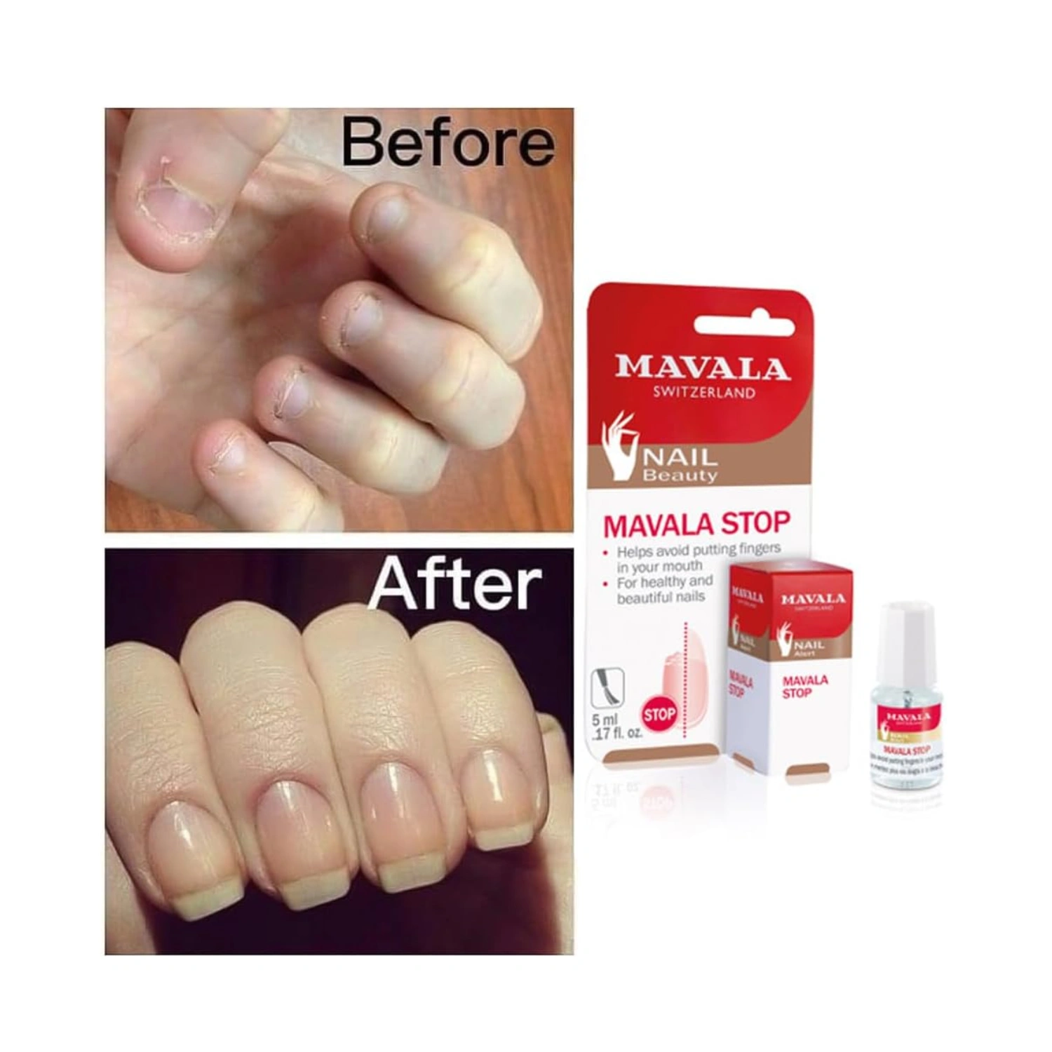 - Apply a coat onto the entire nail surface (or over polish) and allow to dry. Avoid washing hands directly after application. Re-apply every two days until the habit has stopped. Of course, before each re-application, remove Mavala Stop with Nail Polish Remover.