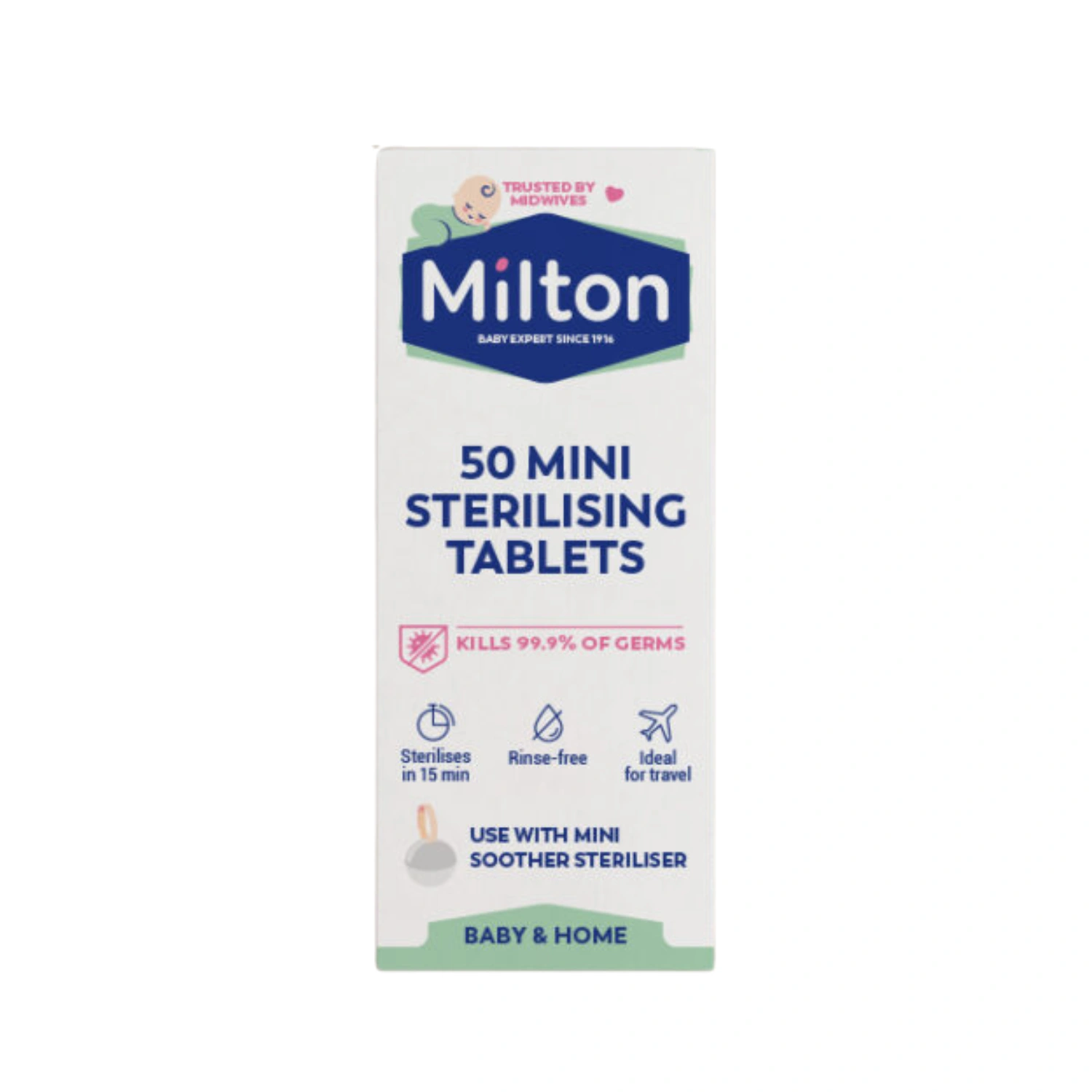 A pack of 50 safe and economical, special formula mini sterilising tablets from Milton designed for use with the Milton Mini Soother Steriliser. Please see instructions for Mini Soother steriliser.