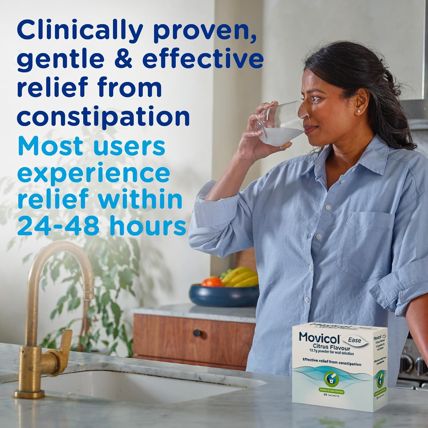 Adults 18 Years and above: Empty the powder from a Movicol® Ease sachet into 125ml of water). Stir well, until fully dissolved. Drink up and wait at least 24 hours for Movicol® Ease to take effect.