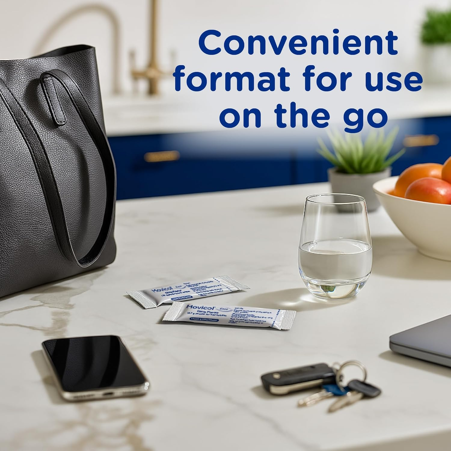 When taking Movicol® Ease you should continue to take plenty of fluids. The fluid content of Movicol® Ease should not replace your regular liquid intake.