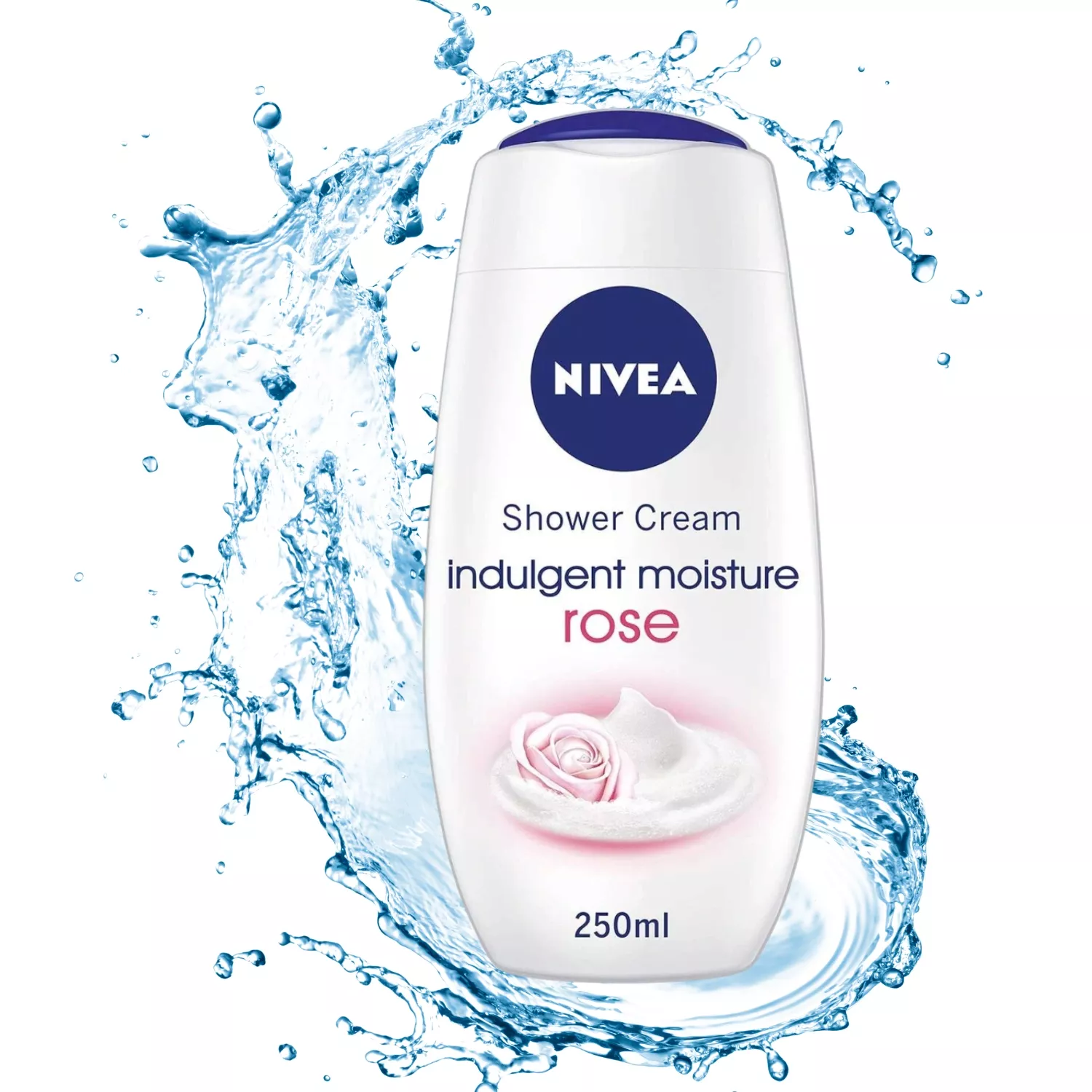 Apply Nivea Shower Indulgent Moisture Rose onto wet skin, lather, and then rinse thoroughly. For external use only.