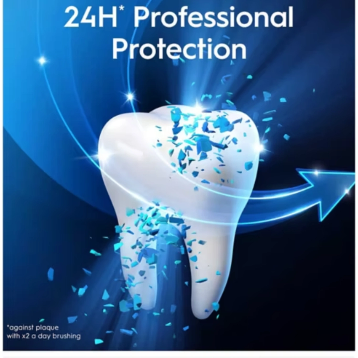 Oral-B Pro-Expert Professional Protection provides 24 hours protection against plaque with twice a day brushing. It targets and protects against the 8 areas dentists check most: gum problems, sensitivity, cavities, plaque, stains, bad breath, tartar and enamel erosion.