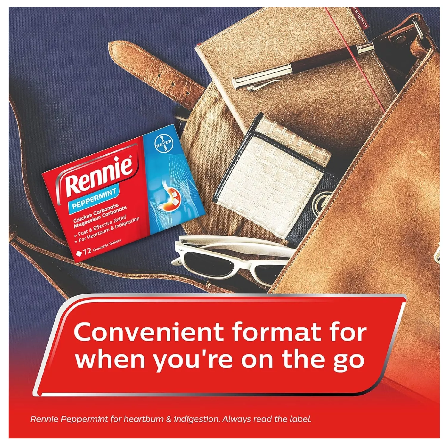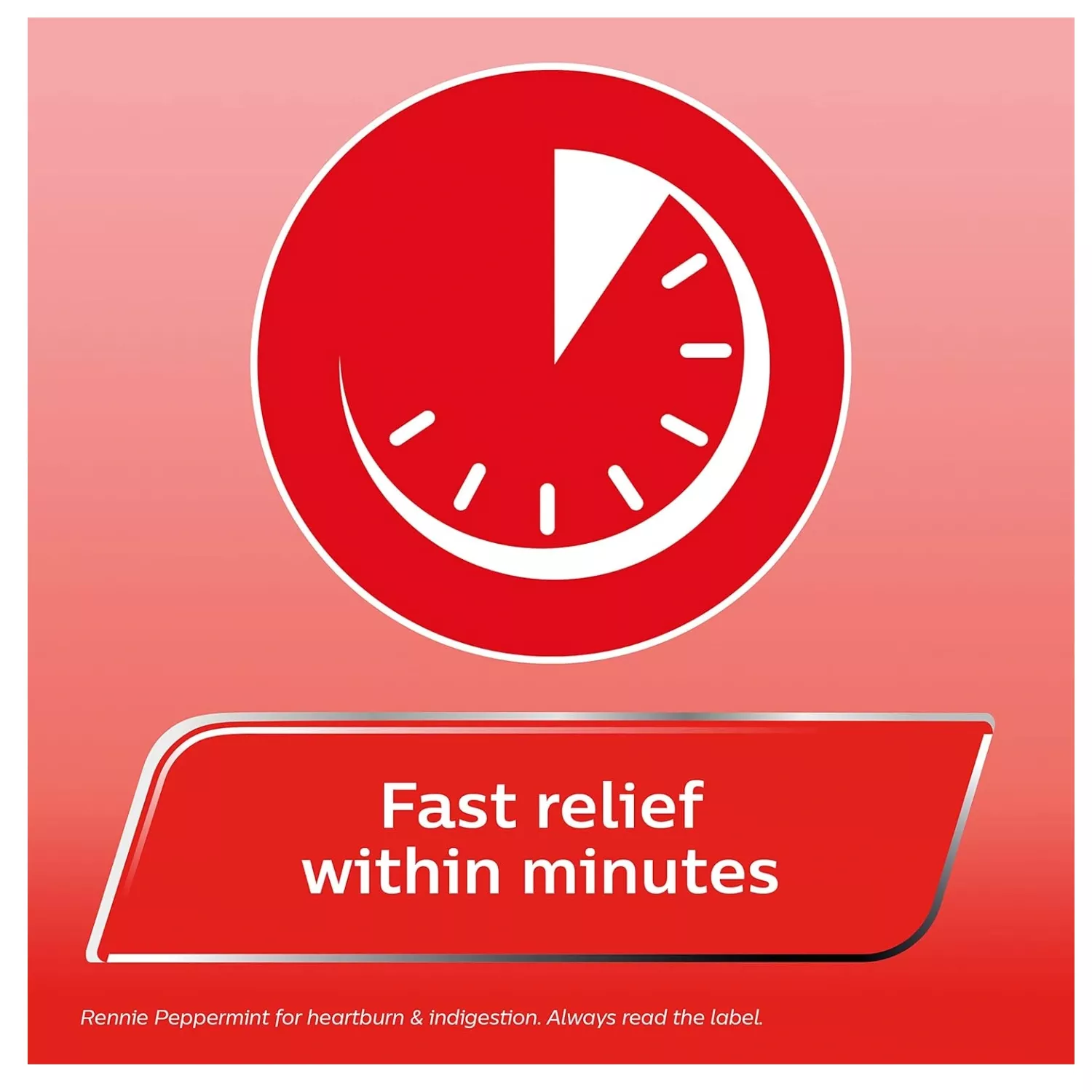 Rennie antacids quickly neutralise excess stomach acid to relieve heartburn and indigestion, and the alginic acid helps soothe your symptoms, forming a protective barrier to stop acid escaping from the stomach. Wherever you are and whatever you?re up to, Rennie can help relieve uncomfortable symptoms rapidly, allowing you to be as productive and creative as you need to be at work and play. The fast action means that even at short notice you can be on top of heartburn.
