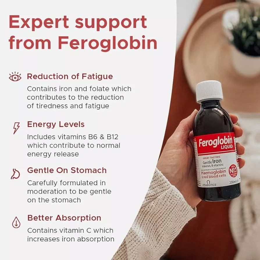 Vitabiotics Feroglobin-B12 iron supplement liquid comes with swiss alpine malt. It contributes to normal formation of haemoglobin and red blood cells. It includes iron, folate ans B12 which can contribute to the reduction of fatigue. It has delicious taste honey, malt orange which is gentle on the stomach. It is suitable for the whole family. It has no alcohol or artificial colours and not tested on animals.
