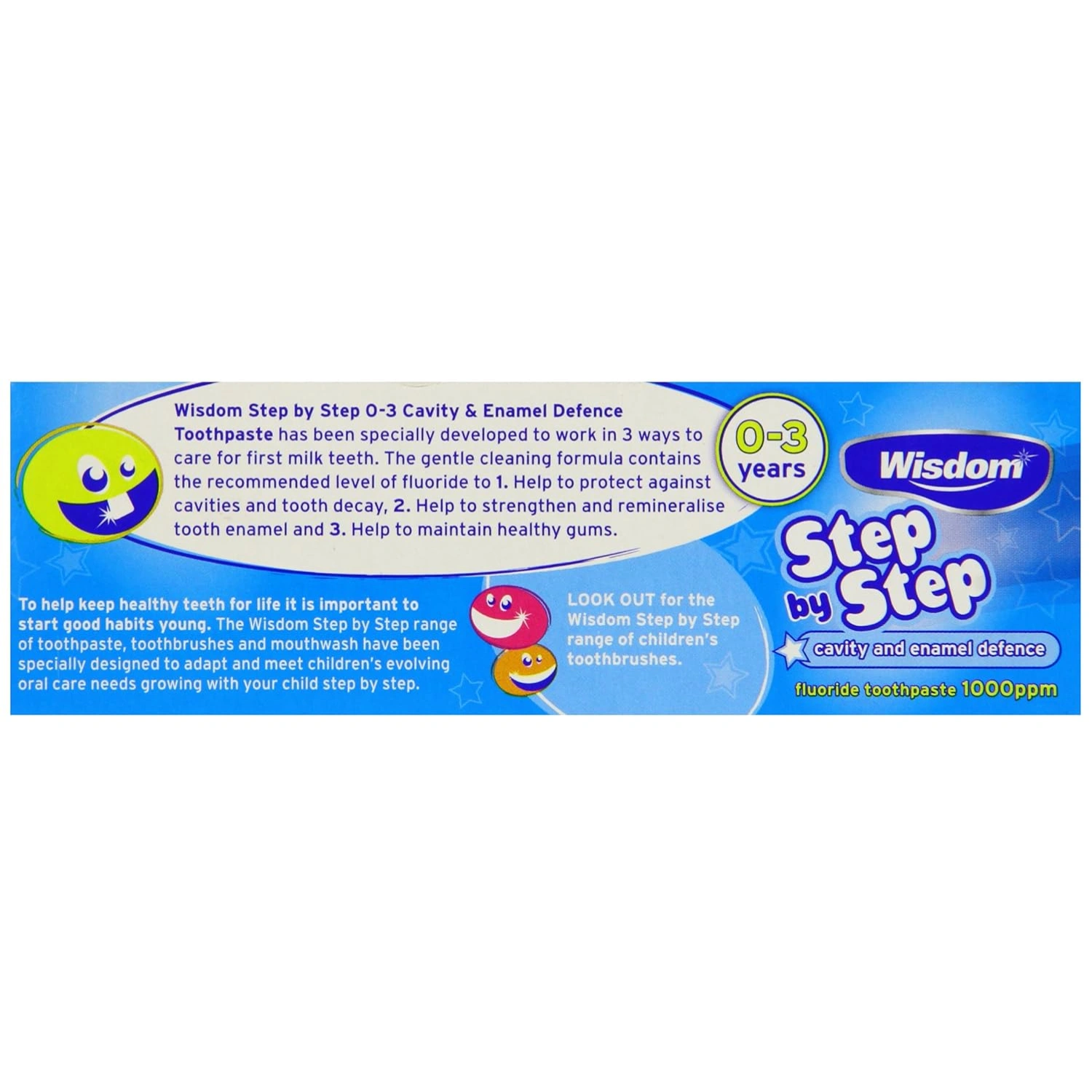 The Wisdom 75ml Step by Step 4+ Years Fluoride Toothpaste is formulated for children aged four and older to protect against cavities and strengthen enamel. It comes in a gentle mint flavor and is part of the larger Wisdom Step by Step oral care range for kids.